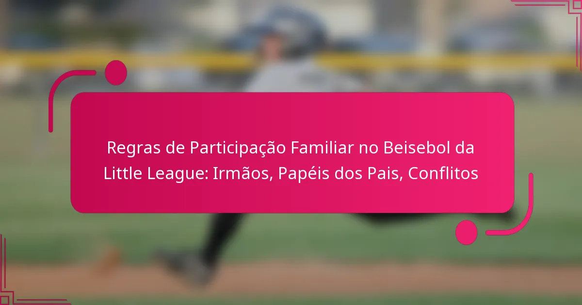 As regras de participação familiar na Little League Baseball são essenciais para criar uma atmosfera de apoio para os jovens atletas e promover o envolvimento da comunidade. Estas diretrizes clarificam os papéis dos irmãos e dos pais, garantindo que todos compreendam as suas responsabilidades e a importância de aderir às regras estabelecidas para uma experiência positiva.