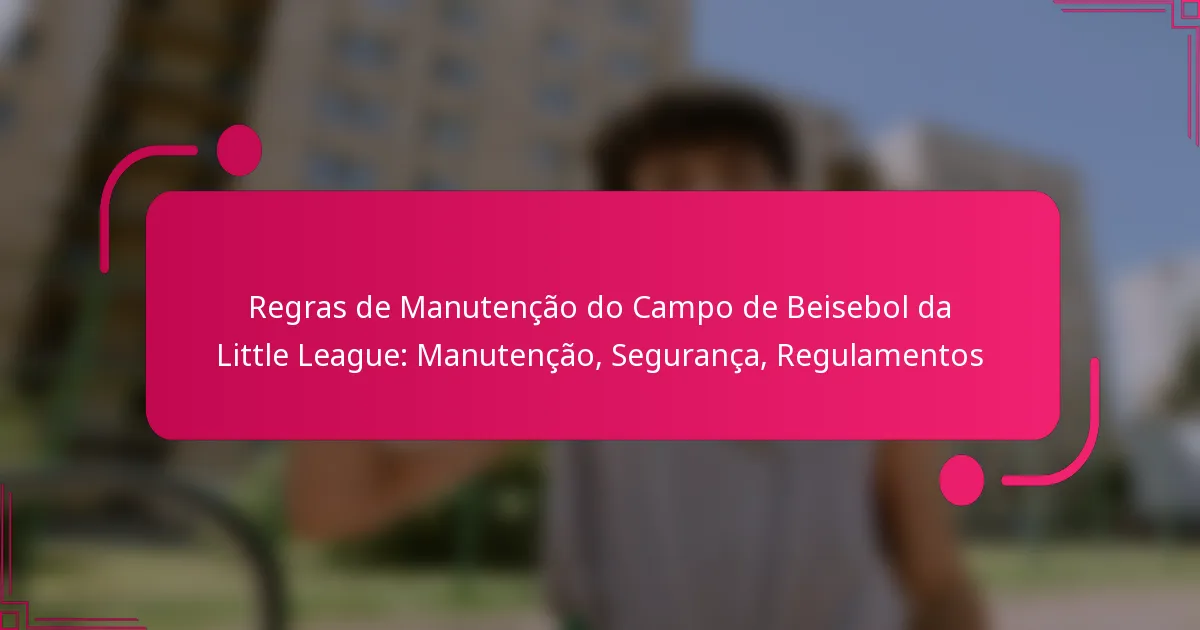As regulamentações de manutenção dos campos de baseball da Little League focam em garantir condições seguras e jogáveis para os atletas jovens. Estas regras abrangem padrões de manutenção, regulamentações locais, requisitos de conformidade, dimensões do campo e horários de manutenção.