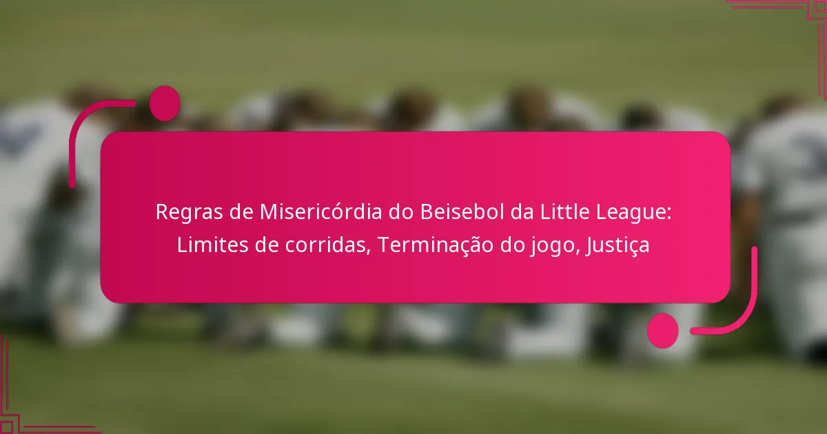 As regras de misericórdia na Little League Baseball estabelecem limites de corridas para promover a justiça e o espírito desportivo durante os jogos. Estas regras ajudam a prevenir jogos desequilibrados, permitindo a terminação antecipada se uma equipa tiver uma vantagem significativa sobre a outra.