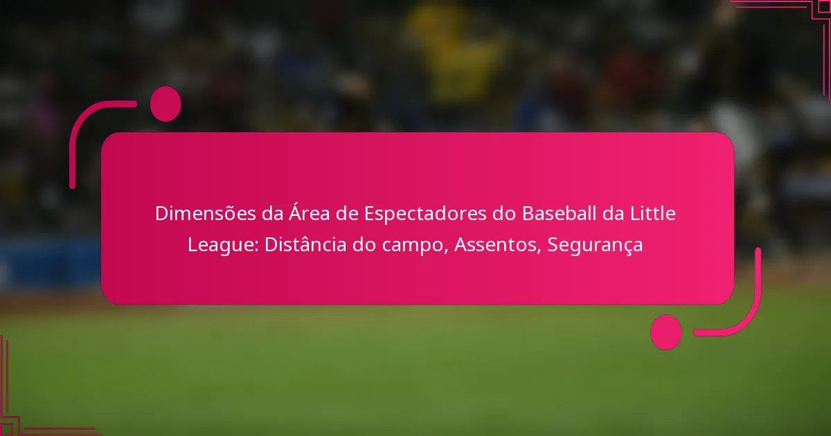 As dimensões recomendadas para as áreas de espectadores do baseball da Little League priorizam a segurança e o conforto, proporcionando uma experiência de visualização agradável. Áreas devidamente projetadas devem considerar as distâncias do campo, arranjos de assentos e acessibilidade para melhorar a experiência de todos os participantes.