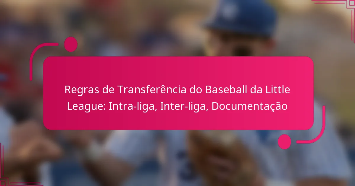 As regras de transferência do baseball da Little League regulam como os jogadores podem mover-se entre equipas dentro da mesma liga ou entre ligas diferentes. Compreender estas regras é crucial para garantir a conformidade e facilitar transições suaves para os jovens atletas.