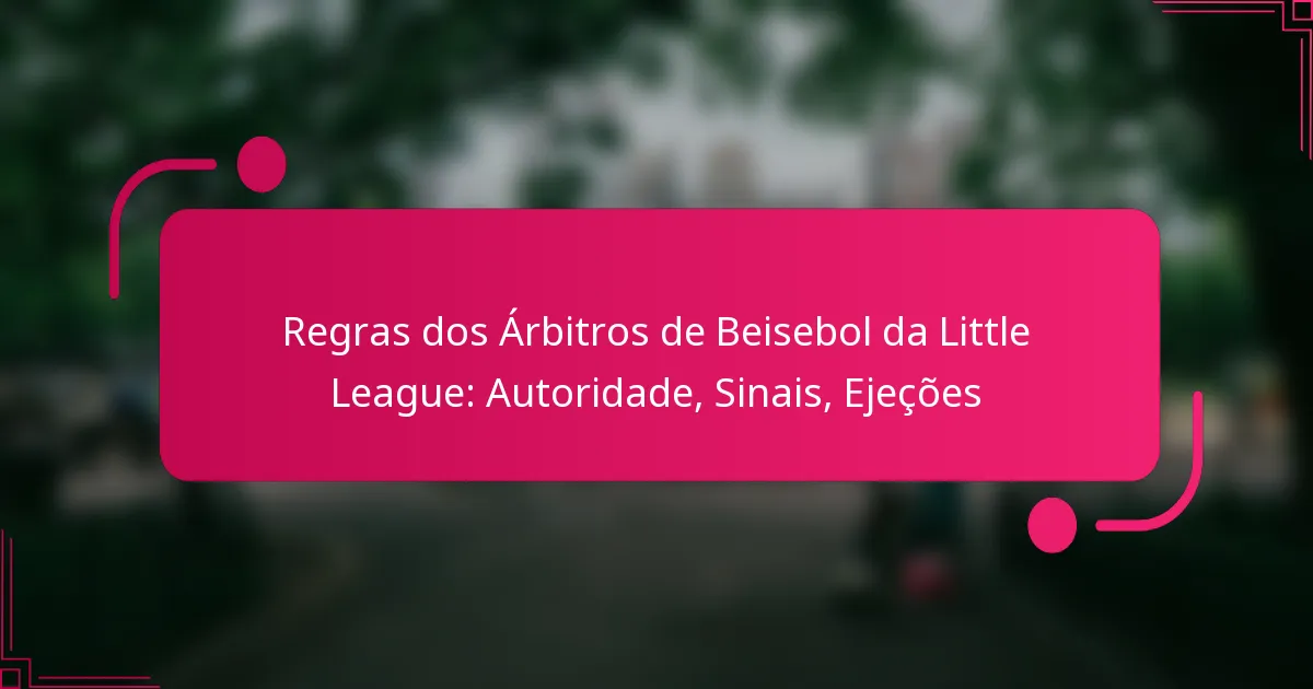 Os árbitros no basebol da Little League gerem as expulsões para manter a integridade do jogo e garantir um jogo justo. As expulsões podem ocorrer para jogadores ou treinadores devido a comportamentos inadequados, e o processo envolve critérios e procedimentos específicos que respeitam as regras do jogo.